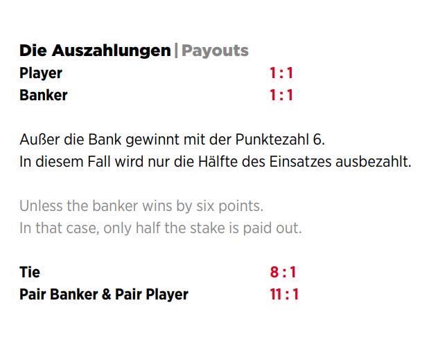 Eine interessante Variante: Ohne Kommission, Macau Baccarat, casino.at. Ziemlich tricky: When playing Commission Free Baccarat, you should bet the Player every time, because that house edge is lower than the Banker’s, 1.24% vs. 1.46%. -