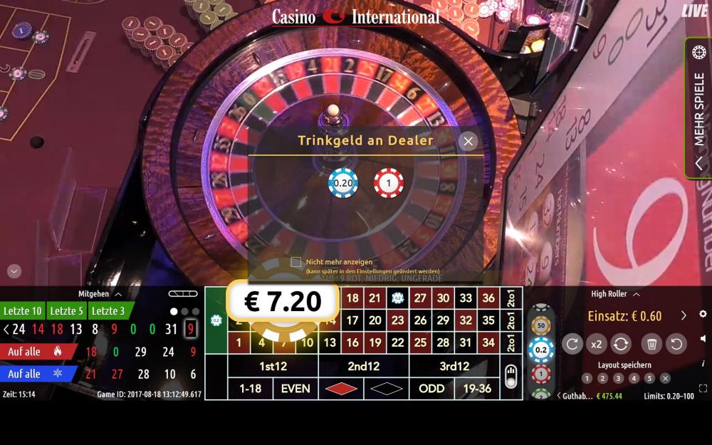 68. Auswertungs-Partie Statistik Partie Nr.: 62 Gespielt am 20.08.2017 im Dublinbet (Batumi) Live Casino Die Partie wurde nach 47 Coups mit +57 Stk. beendet. Coup Zahl 01. 31 02. 13 03. 29 04. 22 05. 3 06. 24 07. 12 08. 22 1. 2er - Satzstart 09. 5 10. 23 11. 33 12. 13 2. 2er 13. 27 14. 22 TREFFER! Eingesetztes Angriffs-Kapital: 8 Stk. Gezogen: +35 Stk. = Angriff-Gewinn: +27 Stk. Früher F3 - Wartephase 15. 36 16. 2 17. 28 18. 3 ---- Ende 1. HR ---- 19. 9 20. 0 21. 14 Es beginnt wieder mit dem Einstieg interessant zu werden… 22. 8 1er - warten… 23. 25 1er - warten… 24. 8 Favo F2, Startsignal Neuer Angriff ------------------ Satz: 1 Stk. "22" 25. 35 26. 4 27. 3 2. 3er 28. 13 3. 3er 29. 27 30. 34 31. 19 32. 7 33. 19 34. 11 35. 5 36. 19 37. 10 ---- Ende 2. HR ---- (Satzerhöhung auf 2 Stk. Je Plein) 38. 36 39. 11 40. 11 4. 3er 41. 11 TREFFER! Eingesetztes Angriffs-Kapital: 67 Stk. Gezogen: +70 Stk. = Angriff-Gewinn: +3 Stk. Ein Treffer durch einen Dreierschlag - auch nicht schlecht…. Neuer Angriff ---------------------- Satz: 1 Stk. Auf "11" 42. 17 43. 9 44. 10 45. 22 2. 4er 46. 6 47. 11 TREFFER! Eingesetztes Angriffs-Kapital: 8 Stk. Gezogen: +35 Stk. = Angriff-Gewinn: +27 Stk. PARTIE ENDE mit 57 Stk. 1. Angriff: +27 Stk. 2. Angriff: + 3Stk. 3. Angriff: +27 Stk. ------------------------------ Gesamt: +57 Stk. Coups: 47 Umsatz: 83 Stk. Buchungsblatt: 68_Partie.pdf Screenshots: Coup 41 - Trefer durch Dreierschlag Coup 47 - Partie Ende -