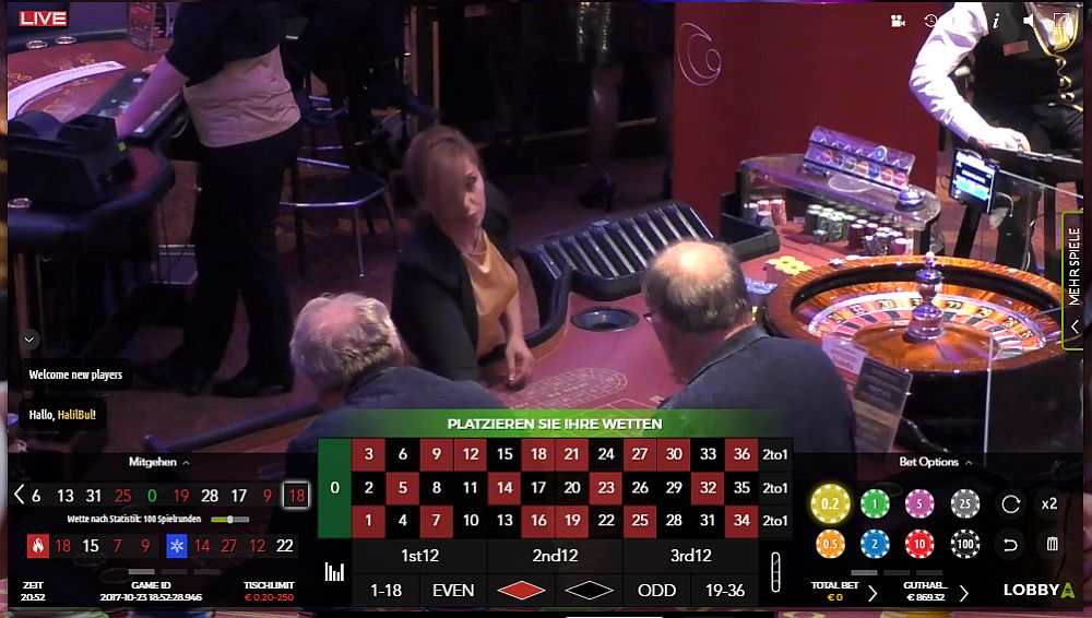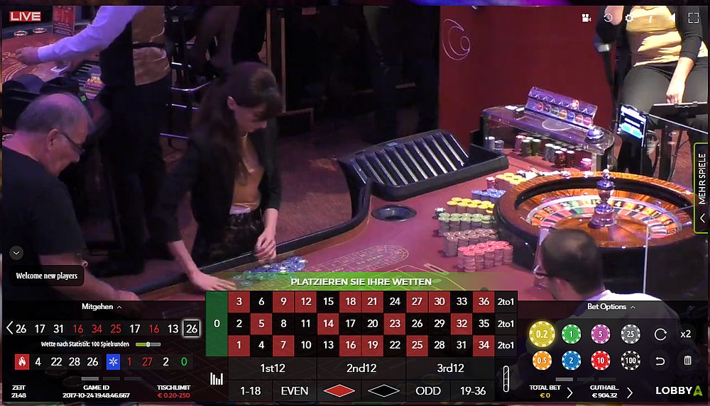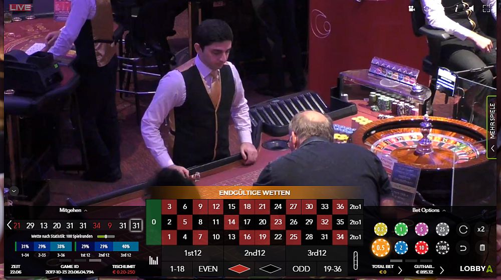 22. @alle Heutige Live-Partie 2-051 So Freunde ... wo spielen wir heute die nächste Live Partie 23.10.2017 ? Macht mir Vorschläge bis 20:10h in welchem Online Live Casino Batumi Saint Vincent Platinum Update 20:22h @hemjo spielt auch im Batumi daher beginne ich auch hier die Partie. Vorlauf bisher: 14, 0, 15, 2, 33, 13, 8, 19, 26, 11, 2, 34, 30, ... Updates hier sobald die Parie beginnt... Update 20:54h Vorlauf beendet. Partie Start Vorlauf HR I 14, 0, 15, 2, 33, 13, 8, 19, 26, 11, 2, 34, 30, 16, 15, 15, 20, 26, HR II 36, 10, 19, 24, 33, 18, 9, 6, 7, 6, 13, 31, 25, 0, 19, 28, 17, 9, 18 Partie 1. Coup "31" Update 21:10h 1. Angriff ab Coup 16 Satz auf "8" Update 21:18h1. Treffer bei Coup 18 "24" (+31) kurze Wartephase... Update 21:19h2. Angriff ab Coup 23 Satz auf "24" Update 21:34h2. Treffer bei Coup 35 "8" (+18) Wartephase... Update 21:38h Bei Coup 39 "8" früher F5 erschienen - längere Wartephase... Update 22:06hBei Coup 66 während der Wartephase 1. F6 "31" Partie Ende mit +49 Stk. Gruß: Roli 888
