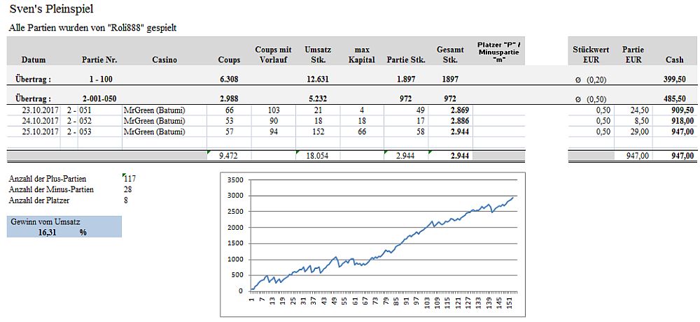 13. @Hans Dampf Nerven und Geld zu verballern ist da nicht notwendig. Jeder der sich ernsthaft für den Spielansatz interessiert hat die Möglichkeit bereits 7 komplett ausgewertete Monats-Permanenzen von 3 Casinos (Permanenzen und Buchungsblätter - alles hier zum downloaden) OHNE auch nur 1 Cent zu setzen, auszutesten. https://www.roulette-forum.de/topic/18025-testreihe-sven´s-spiel/?page=65&tab=comments#comment-367376 https://www.roulette-forum.de/topic/18025-testreihe-sven´s-spiel/?page=111&tab=comments#comment-369670 https://www.roulette-forum.de/topic/18025-testreihe-sven´s-spiel/?page=153&tab=comments#comment-371978 Gruß: Roli888