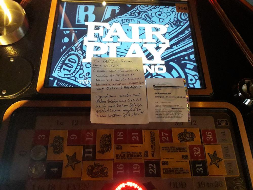 Hier das 3. Video ( Fortsetzung vom Video 2 ) vom 05.10.19. Sorry , das es Verdreht Aufgenommen ist ( weiß nicht warum , und ich konnte nicht zu recht drehen ) !! Bei diesem Video sieht man , wie ich, als die 36 kam , an mehreren Geräten Gewonnen habe ! Ein " Pot " wurde voll ,,..das sind ca 500 Euro. Habe an dem Gerät Nr 360 , mit den restlichen Guthaben alle zahlen, außer 33-35-36 je 1 punkt gesetzt ( als Futter Gerät ) ! Habe dann an vielen Geräten , Die Zahlen 33-35-36 Hochgesetzt !! Die 36 kam . Das ist das letzte Video , von dem Gerät im 2.Stock ! Das Bild ist , der Anfang von dem Gerät , wo ich anfing wieder zu spielen . Das ist das Gerät wo Die Monteure vor einigen Tagen auseinander genommen hatten ! Die Videos dazu werden folgen ,,ich habe die ganze Nacht nicht geschlafen . Bin jetzt müde , es ist 8 Uhr 55 . https://www.youtube.com/watch?v=c1FuSwYWinA Das untere link ist Musik https://www.youtube.com/watch?v=ihWshIvmqLo&list=PLvHz839lTfyW95BZq0xs1zVrpGNxTjE-v&index=20