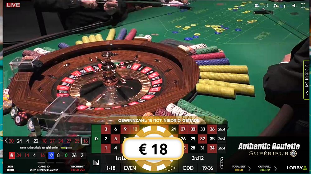 Roli888 Geschrieben Oktober 21, 2017 Geschrieben Oktober 21, 2017 (bearbeitet) @alle Sa. 21.10.2017 - 16:53h Die nächste Live-Partie 2-047 startet in Kürze im PLATINUM Live-Casino. Vorlauf bisher: 7, 2, 5, 24, 31, 36, 27, 33, 1, 1, 16, 20, 35, 31, ... Sobald die Partie beginnt, poste ich hier die Updates. Update 17:40h Vorlauf beendet - Partie Start Vorlauf HR I 7, 2, 5, 24, 31, 36, 27, 33, 1, 1, 16, 20, 35, 31, 6, 22, 4, 14, HR II 23, 31, 33, 15, 5, 11, 3, 14, 17, 10, 0, 4, 20, 14, 9, 31, 6, 31, 24 Partie: 1. Coup "31" Update 17:50h 1. Angriff ab Coup 11 Satz auf "20" Update 18:17h ... Tisch wurde geschlossen... Partie kann daher nicht gespielt werden Gruß: Roli888 bearbeitet Oktober 21, 2017 von Roli888