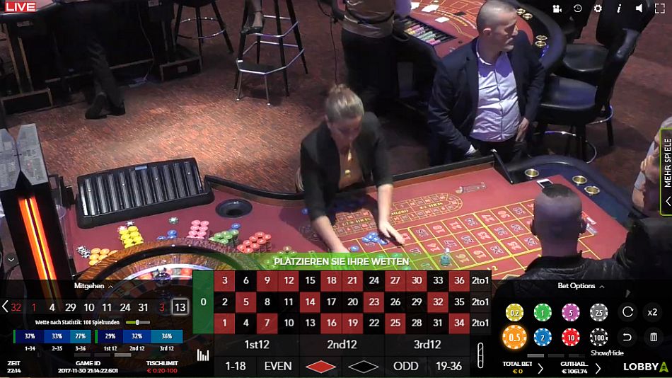 Roli888 Geschrieben November 30, 2017 Geschrieben November 30, 2017 (bearbeitet) @alle Do. 30.11.2017 - 29:53h Nächste Live-Partie 2-100 startet in Kürze im BATUMI (Tisch 2) Live Casino (Authentic Roulette TURBO)Vorlauf bisher: 28, 35, 3, 27, 25, 2, 6, 17, 25, 0, 26, 27, ... Updates hier (noch 25 Coups) sobald die Partie beginnt. Update: 20:14hVorlauf beendet, Partie Start Vorlauf HR I 28, 35, 3, 27, 25, 2, 6, 17, 25, 0, 26, 27, 13, 3, 19, 15, 13, 28, HR II 33, 29, 8, 0, 30, 29, 14, 14, 10, 16, 30, 10, 34, 5, 26, 2, 15, 5, 19 Partie: 1. Coup "20" Update: 20:21h 1. Angriff ab Coup 4 "20" (damit @hemjo nicht wieder sagt ich halte mich nicht an die Regeln... :-) ) Update: 20:54h 1. Treffer Coup 26 "25" (+7) - neuer Angriff Update: 21:16h Treffer Coup 42 "24" (+23) - neuer Angriff Update: 21:52h Treffer Coup 75 "13" (+8) - neuer Angriff Update: 22:14hTreffer Coup 89 "13" (+2) Partie Ende mit +40 Stk. Gruß: Roli888 bearbeitet November 30, 2017 von Roli888