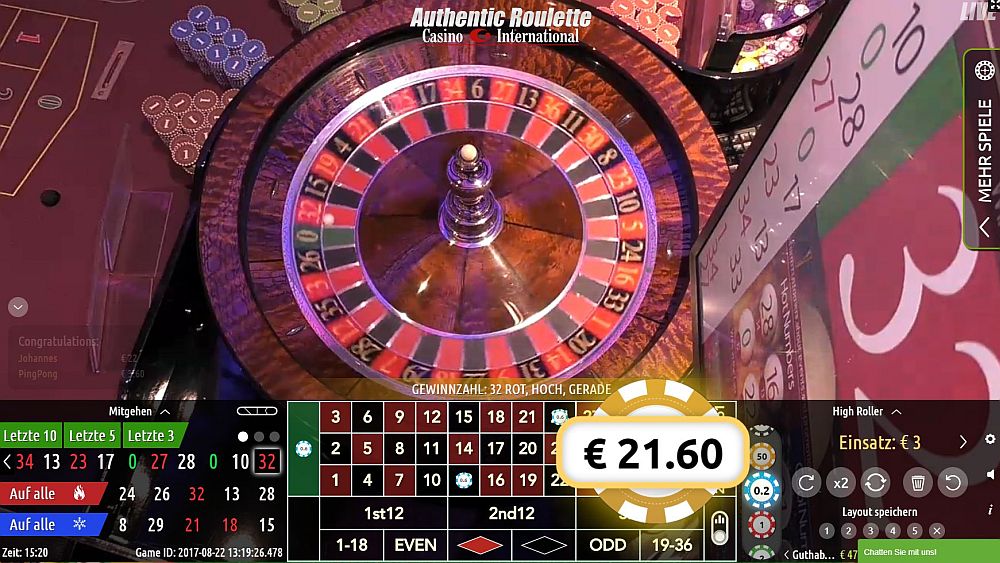 Roli888 Geschrieben August 22, 2017 Geschrieben August 22, 2017 74. Auswertungs-Partie Statistik Partie Nr.: 69 Gespielt am 22.08.2017 im Dublinbet (Batumi) Live Casino Die Partie wurde nach 45 Coups mit + 64 Stk. beendet. Coup Zahl 01. 2 02. 9 03. 29 04. 3 05. 15 06. 3 1. 2er - Satzstart 07. 19 08. 26 09. 11 10. 27 11. 33 12. 25 13. 4 14. 31 15. 27 2. 2er 16. 16 17. 28 18. 22 ---- Ende 1. HR ---- 19. 32 20. 26 3. 2er 21. 18 22. 33 4. 2er 23. 29 5. 2er 24. 34 (Satzerhöhung auf 2 Stk. Je Plein) 25. 6 26. 13 27. 19 6. 2er (Satzerhöhung auf 3 Stk. Je Plein) 28. 8 29. 4 7. 2er 30. 3 (Satzerhöhung auf 4 Stk. Je Plein) TREFFER! Eingesetztes Angriffs-Kapital: 20 Stk. Gezogen: +35 Stk. = Angriff-Gewinn: +15 Stk. Neuer Angriff ----------------------- Satz: 1 Stk. auf "3" 31. 4 2. 3er 32. 23 33. 20 34. 21 35. 32 3. 3er 36. 25 37. 35 2. 3er ---- Ende 2. HR ---- 38. 25 4. 3er 39. 34 40. 36 41. 0 42. 12 (Satzerhöhung auf 2 Stk. Je Plein) 43. 33 5. 3er 44. 32 TREFFER! Eingesetztes Angriffs-Kapital: 52 Stk. Gezogen: +70 Stk. = Angriff-Gewinn: +18 Stk. Neuer Angriff ---------------------- Satz: 1 Stk. auf "32" 45. 32 TREFFER! Eingesetztes Angriffs-Kapital: 1 Stk. Gezogen: +35 Stk. = Angriff-Gewinn: +34 Stk. PARTIE ENDE mit 64 Stk. 1. Angriff: +12 Stk. 2. Angriff: +18 Stk. 3. Angriff: +34 Stk. ------------------------------ Gesamt: +64 Stk. Coups: 45 Umsatz: 181 Stk. Buchungsblatt: 75_Partie.pdf Screenshots: Permanenz ab Coup 2 Partie Ende