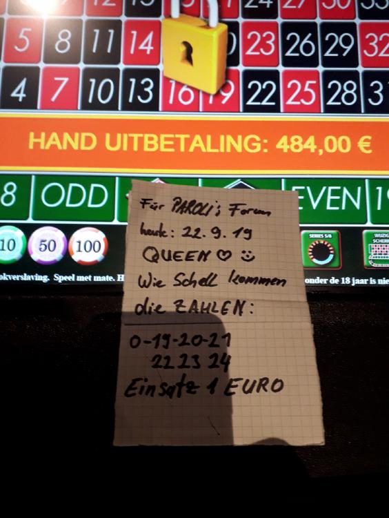 vomRouletteLiebhaberzum Geschrieben September 24, 2019 Autor Geschrieben September 24, 2019 Huhu Gewinner , bin wieder zu hause ,,,.. kenne alle Städte , die du aufgezählt hast ,,... in Venlo wurde ich zum Roulette King . Das mit Psychologie , ( zahlen kommen sofort wenn du weg gehst oder nicht mehr spielst usw. ) beschreibe ich mit Psychologie ! die Videos die ich heute gemacht habe werden das KNALLHART bestätigen !! Du auf jeden Fall , und vielleicht noch einige werden das dann besser verstehen !! Was die Forellen , verstehen wollen , oder nicht verstehen wollen ist mir Schnuppe !! Habe wenig zeit , und muss noch die Videos Hochladen ( dauert echt zu lang mit Bluetooth ) , deshalb ist jeder geschriebene Wort , wegen denen für die Katz . Bild 1 - habe für dich auch RedBull geholt Bild 2 - auf diesem spiel-platz werden 20 zahlen , je 1 punkt gesetzt ( die zahlen die abgedeckt sind , sind dafür gedacht , das ich die nicht setze , nur die zahlen die ich ihr seht werden gesetzt ,,, ich muss ja ganz schnell setzen , deswegen diese " Abdeckhilfe " Bild 3-auf diesem spiel-platz werden 15 zahlen je 1 punkt gesetzt -- insgesamt 35 zahlen , 0 und 3 bleiben frei ( meine HAUPTZAHLEN ) wollte euch zeigen , das ich mich auf 2 Zahlen Fixiere !! Bild 4-5 ist extra gemacht worden für mein QUEEN Juan del Mar ! Es folgen mehrere Videos , lange Videos ( kann nicht abschätzen wie lange es brauchen wird beim übertragen ) ! was wird man da sehen : 1. Knallharte Psychologie ( nicht gut für schwache nerven ) 2. etwas zum Freuen , für die Forellen , denn die werden sehen wie ich ( weiß nicht genau ) um die 400 Euro verliere , weil ich den gerät zu sehr " RUPFEN " wollte !! Ob das ein Happy End , oder Total schaden gabs , verrate ich jetzt nicht .